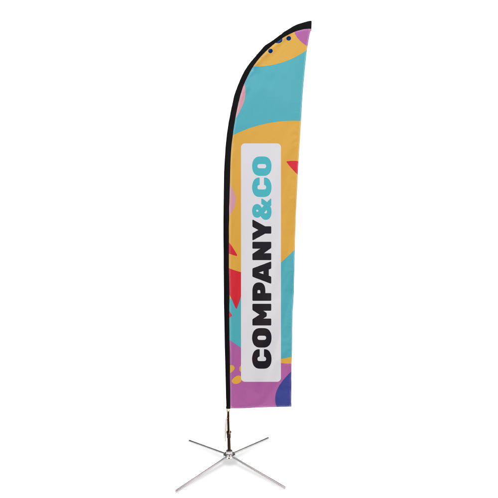 Dankzij hun subtiele kromming is het een elegant alternatief om te bedrukken, ten opzichte van de langwerpige baniervlaggen. Heb je een strandpaviljoen of elders een winkel? Door de mooie vorm van deze reclame vallen ze snel op. Laat jouw beachvlag bedrukken met een eigen ontwerp en vele ogen zullen gericht zijn op jouw uiting.