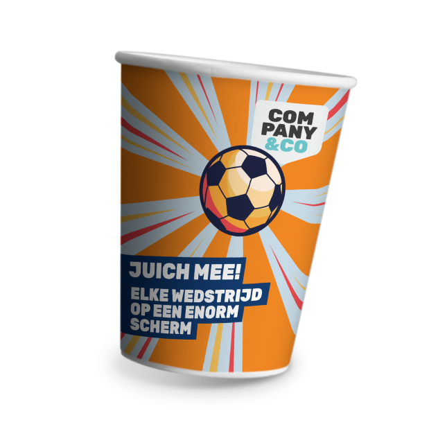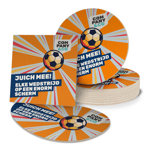 Je wilt natuurlijk goed voor de dag komen bij de voetballiefhebbers. Een café en bierviltjes horen bij elkaar. Laat bierviltjes bedrukken met jouw logo aan de ene kant en een mooi oranje gerelateerd ontwerp aan de andere kant. Voetballiefhebbers blijven het liefst de hele wedstrijd zitten. Toch moet er af en toe drinken gehaald worden. Met de handige draagtrays met eigen bedrukking beperk je het aantal tochten naar de bar. Zo hoeft niemand een doelpunt te missen. En kijk je niet vanuit een café? Dan is het altijd leuk om het bij jou thuis of op kantoor om te toveren in een cafésetting!